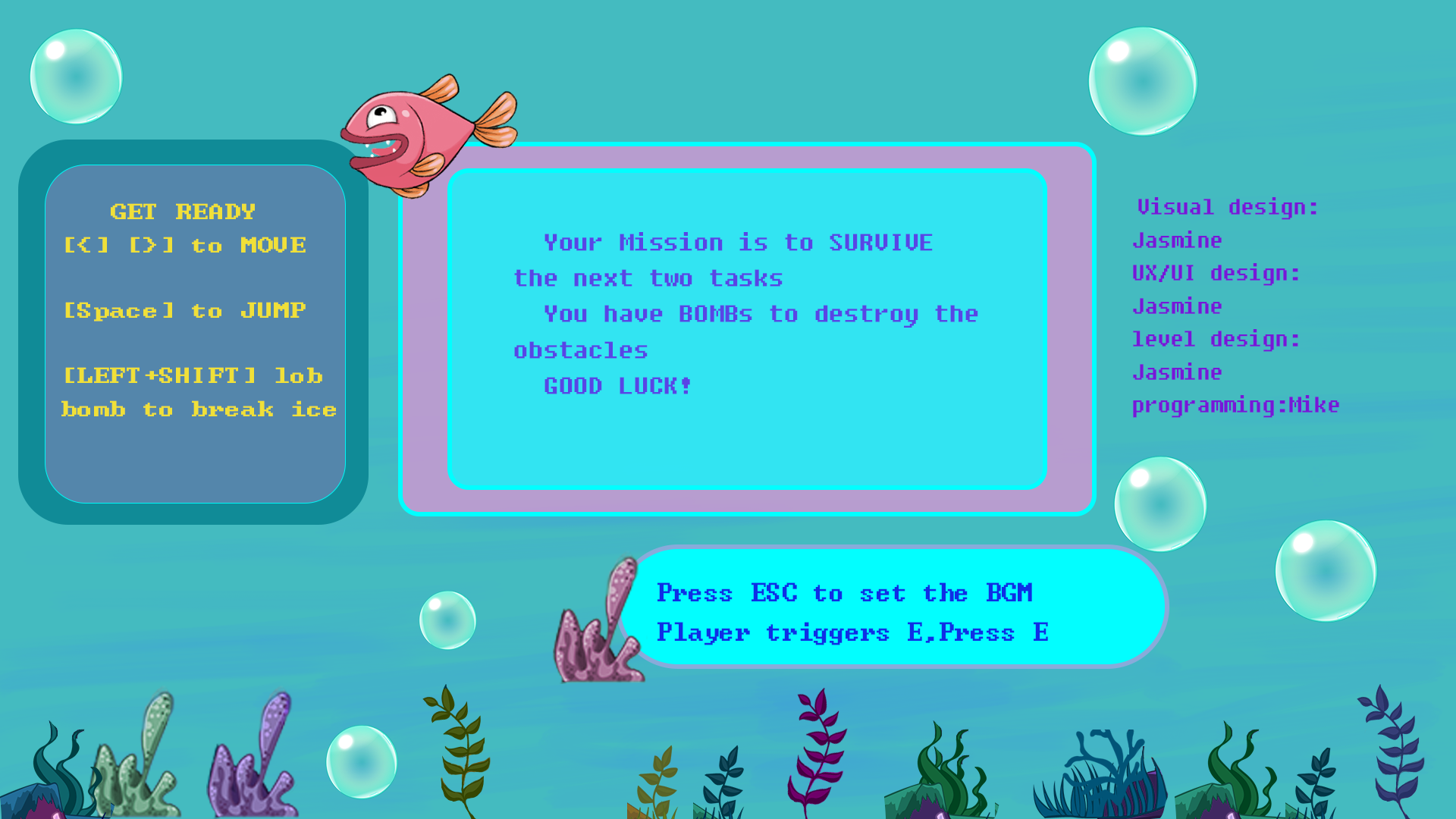 · Controls: Mouse J to shoot skeleton man, E to interact, [<][>} to move, [space] jump